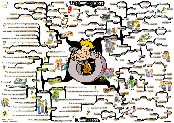 This IQ Matrix provides a life coach with a visual representation of their client’s current and desired reality. The life coaching wheel is based on a popular life coaching tool used within the coaching industry. It is commonly used to help a client find balance in life, especially when dealing with life transitions and change. The mind map breaks down the purpose of the life coaching wheel. It then provides you with guidelines on how to use the wheel during a coaching session. Even though this is a tool for life coaches to use with their clients. It's also of tremendous value for self-coaching purposes. It can, for instance, be used for prioritizing activities, for tracking progress to a goal, for identifying gaps in knowledge and skill areas, and much more.
