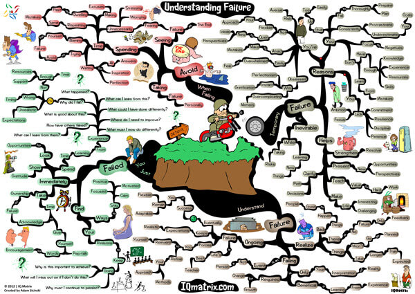 This IQ Matrix explores how to make the most of periods of your life when you experience failure. The mind map breaks down how to respond to failure in optimal ways. It describes the various things you must keep in mind when you experience failure. These guidelines will help shift how you think about and interpret your failures. The map also walks you through how to prepare yourself to make the most of every failure. And, finally, the map highlights scenarios where accepting failure is the best option for long-term success.
