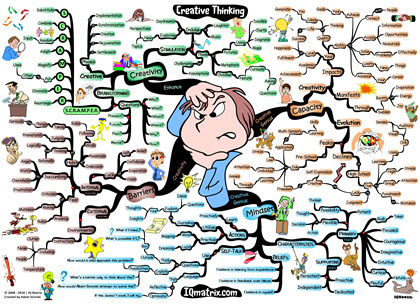 This IQ Matrix explores how to think more creatively and flexibly about your life problems and circumstances. The map outlines the impact that creativity can have on our lives. It breaks down the beliefs and characteristics of highly creative individuals. It presents you with common creative roadblocks. And concludes by outlining several effective techniques for thinking outside the box and for boosting your ability to think creativity while solving problems.