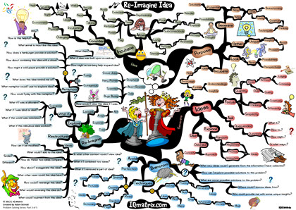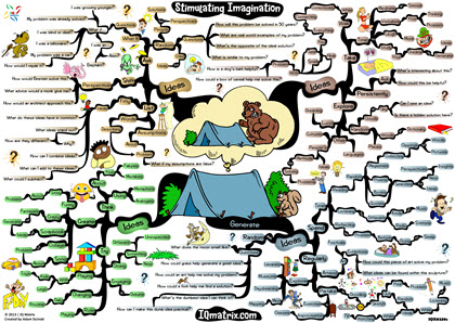 This IQ Matrix explores the brainstorming and creative thinking stages of the problem solving process. The map outlines how to generate new ideas. Provides you with guidelines for more effective brainstorming. It shows you how to come up with creative ideas using a series of questions. These questions lay out a blueprint for finding potential solutions to problems. The map also highlights the value of incubating your ideas and how incubation can lead to breakthroughs in problem solving.