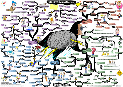 This IQ Matrix delves into the process of brainstorming to help solve organization-wide problems. The map specifically breaks down the process of group brainstorming within a workshop environment. However, this map isn't only for group brainstorming. The techniques presented here can also be used for individual brainstorming activities. Specifically, the map breaks down the advantages of brainstorming, how to prepare for a brainstorming session, how to execute a brainstorming session, and the various brainstorming activities you can undertake to generate creative ideas.