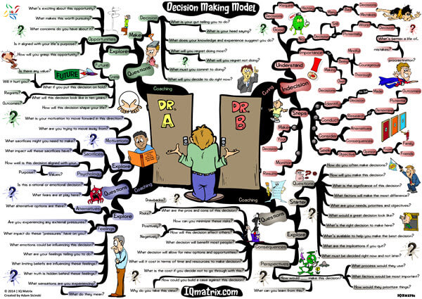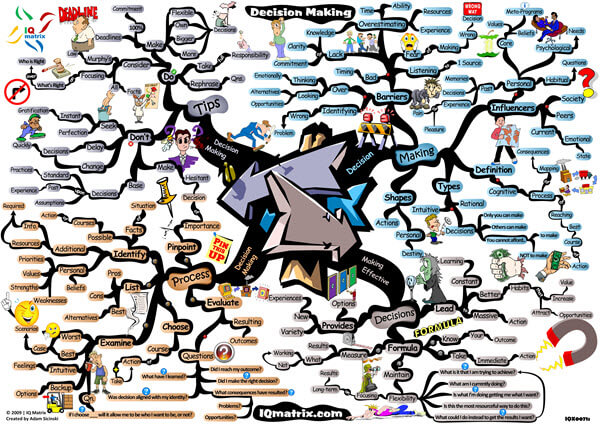 This IQ Matrix explores how to make more effective and optimal decisions when it comes to achieving your goals. The mind map provides you with greater clarity and freedom of choice, which subsequently minimizes the length of time it takes you to make up your mind about something. The mind map specifically defines what it means to make an effective decision. It highlights the barriers to effective decision-making. It explores the forces that guide our decisions. It presents you with a formula for improving your decisions. It then delves into a six-step process for making more effective decisions. And the map concludes by outlining the do's and don'ts of effective decision-making. As you work through this map you will progressively develop the required set of skills that will save you time, energy and money. This will, likewise, minimize the mistakes that are often made when deciding on a course of action.