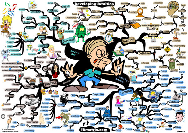 This IQ Matrix explores how to develop your intuition and subsequently make more effective decisions throughout the day. The mind map removes the mystical elements surrounding intuition. As you read through the map you will come to understand how our intuition is formed and how it influences our thoughts and perspective. The map also outlines how developing your intuition can improve your quality of life. It presents you with various practical ideas for tapping into your intuitive abilities. It breaks down a five-step process for developing your intuition. The map concludes by exploring various methods we use that tend to sabotage intuitive thought. As you work through this map you will progressively develop the necessary insight and awareness that will help you use your intuitive abilities to capitalize on opportunities and make more effective decisions.