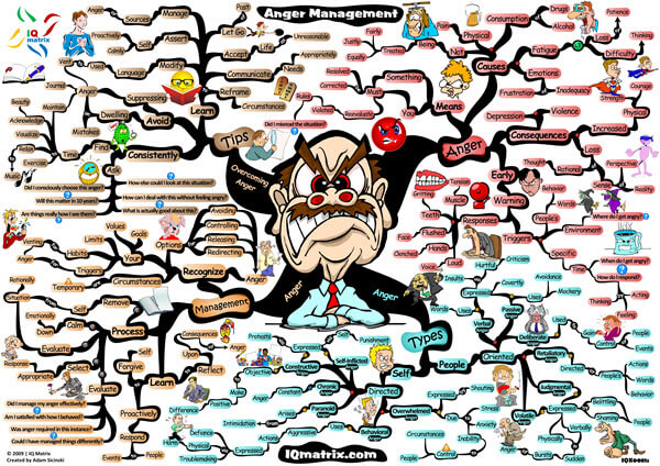 This IQ Matrix explores how to manage your anger in optimal ways. The mind map presents you with effective strategies, techniques and tips to help you take control of your anger and direct it in more positive and productive ways. The mind map breaks down the causes, consequences, and early warning signs of anger. It outlines 12 types of anger that we often get caught up in. And provides you with guidelines for managing and reframing your anger in helpful ways.