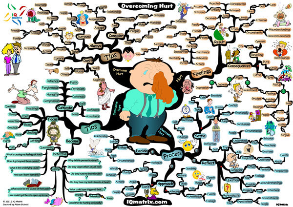 This IQ Matrix explores how to better manage and overcome your feelings of hurt. Whether someone hurt your feelings, pride, or state-of-mind, this map will show you how to work through these feelings in optimal ways. The mind map outlines how and why we experience the emotion of hurt, delves into the consequences of this debilitating emotion, breaks down a four-step process for overcoming feelings of hurt, and provides guidelines for managing your hurt feelings in helpful ways.