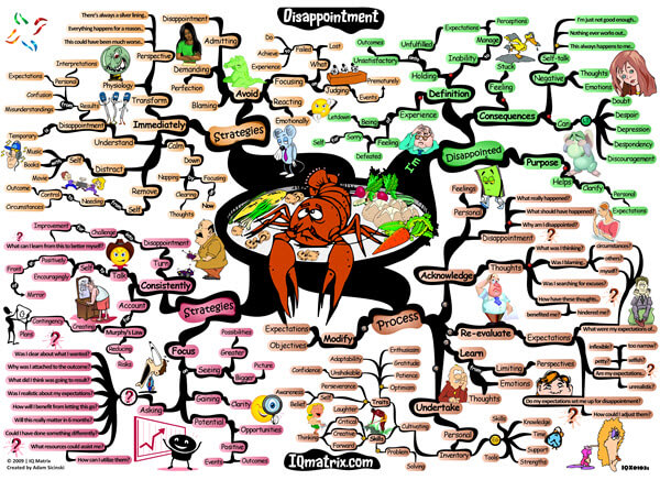This IQ Matrix explores how to move past life’s failures, mistakes, and frustrations in optimal ways. The mind map breaks down what it means to feel disappointed and the consequences it often brings to our lives. The map also delves into a five-step process you can use to effectively overcome your feelings of disappointment. Finally, the mind map presents you with several helpful strategies that will alter your perspective and help you overcome debilitating feelings of disappointment when facing potential mistakes and failure.