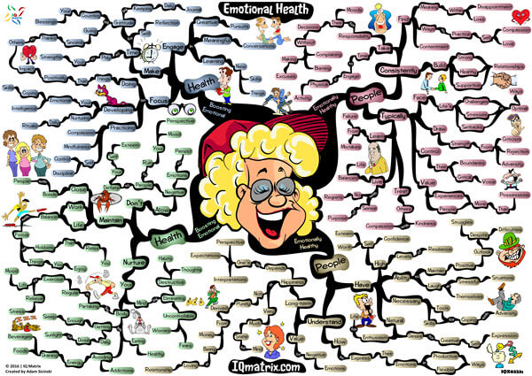 This IQ Matrix explores what it takes to live an emotionally healthy life. We often hear about the importance of physical health, but we rarely hear about the value of emotional health. Yet, often, it is our emotional health that enhances our physical health, which subsequently leaves us feeling happier and more fulfilled. For instance, even if our physical health isn’t at its best, emotionally healthy people have a more resourceful and adaptable state-of-mind. This helps them deal with their physical concerns in far more optimal ways. Moreover, emotionally healthy people have the necessary coping skills needed to work through life’s difficulties far more effectively. This map explores in detail what it takes to live an emotionally healthy life.