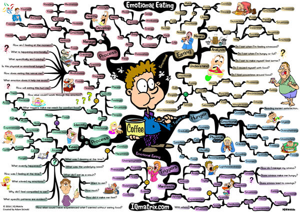 This IQ Matrix explores how to take control of your cravings and escape the cycle of emotional eating. Emotional hunger is very different to physical hunger, however, when caught up in our emotions, it's difficult to recognize this difference. People who struggle with emotional eating also struggle emotionally. Eating becomes a coping mechanism that helps them handle their emotions. However, emotional eating never solves problems and will typically result in feelings of guilt, regret and shame. The key, is, therefore, to find methods for managing those difficult emotions in more optimal ways. Food must no longer be used as a comfort mechanism. This map breaks down what emotional eating is about, explores two types of hunger, breaks down various emotional triggers, and walks you through how to overcome the cycle of emotional eating.