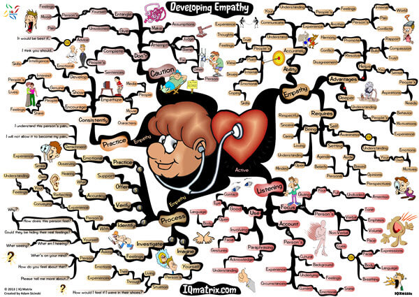 This IQ Matrix explores how to step into another person’s shoes and experience the world from their perspective. Understanding how to practice empathy is an integral part of the social aspect of emotional intelligence. This map will help you develop a richer understanding of another person’s feelings, needs, thoughts, insecurities, fears, and life experiences. As you work through the six-step process outlined in this map you will become more attuned to how people interpret the world around them. Having this understanding will help you build rapport and deeper levels of trust with those you interact with. As a result you will very quickly become more emotionally intelligent and socially aware.