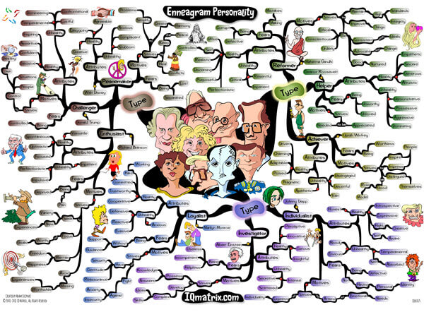 This IQ Matrix breaks down nine interconnected personality types that can help us to better understand ourselves and other people’s behavior in social situations. Each of the nine personality types is represented by the points of a geometric figure called an enneagram. This enneagram shows how different types of personality are interconnected in various ways. Each of the nine personalities subsequently integrates with other personalities at certain points on the Enneagram. Understanding these integrations can help us to figure out people’s motives and behavior in social situations. The Enneagram Personality Type is often used as a typology to gain insights into workplace dynamics. In spirituality, it is commonly presented as a path to higher states of being. Using it can help us gain a deeper self-understanding and while also promoting self-development.