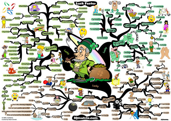 This IQ Matrix explores how high achievers generate the luck they need to achieve their biggest goals. The mind map highlights the qualities and traits that lucky people tend to have in common. It breaks down the mindset we must nurture to help us attract good fortune into our lives. And it walks you through a set of daily action steps you must take to generate more luck as you pursue your goals. Working through this map will help you develop the necessary habits, behaviors, and mindset that will attract more luck, fortune, and abundance into your life.