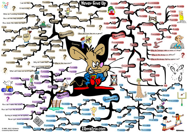 This IQ Matrix explores what it takes to persist and persevere when faced with problems or when dealing with adversity. The mind map breaks down the types of obstacles you will inevitably face as you work toward your goal. It explores the various reasons you are presented with these obstacles. It walks you through the mindset you need to cultivate to overcome these obstacles. And the map concludes by providing you with several suggestions for developing unstoppable determination in pursuit of your goals. As you work through this map you will develop the necessary habits, rituals, and perspective needed to overcome adversity, to generate more luck, and to achieve your goals.