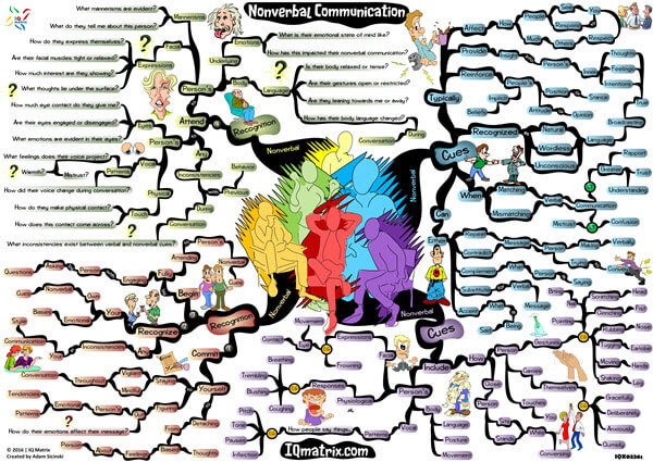 This IQ Matrix explores how to better recognize and understand people’s nonverbal signals. When we communicate with people we do so on two distinct levels. We first communicate at a verbal level using words, phrases, questions, and sentences. Secondly we communicate on a nonverbal level through our gestures, body language, and facial expressions. Understanding these nonverbal cues can help us to quickly recognize what people are potentially thinking, feeling and emotionalizing internally. Furthermore, it helps us to better understand people’s motives and intentions within social situations. This mind map specifically explores how to recognize and decipher eight common ways people tend to come across while interacting with others. Understanding how to read people in this way will help you gain insight into their underlying thoughts, motives, and intentions. You can then use that understanding to influence their behavior, decisions, and actions.