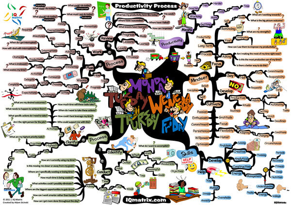 This IQ Matrix explores a process you can use that will help you boost your productivity and accelerate your results. Learning how to be more productive doesn't need to be a complicated process. We can all improve our levels of productivity throughout the day. We just need to follow some tried and tested guidelines for improving our output. This mind map walks you through the mindset you must cultivate to work more productively. It breaks down the skills that will improve your effectiveness and efficiency throughout the day. And it and outlines a six-step productivity process you can use to maximize and optimize how you work on tasks and projects. Working through this map will help you develop the necessary skills, habits, and mindset of highly productive individuals.
