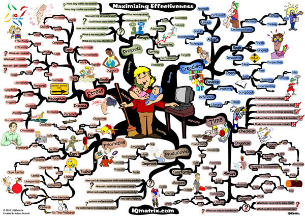 This IQ Matrix explores how to maximize your output at work and boost your productivity throughout the day. To maximize your output you need to understand the key elements that will help you generate optimal results. There are, in fact, only a half dozen things that help us do exactly that. These elements include boosting creativity, managing your time, improving productivity, effective prioritization of tasks and activities, reducing and managing your stress levels, and assessing your progress then making the necessary changes. These are all soft skills that we must learn to develop over time. As we develop ourselves in these areas we will naturally increase our output throughout the day. This mind map provides you with key guidelines for upgrading your ability in each of these areas. This, of course, won't be a quick process. It's something that will take time, work, and effort. But improving in each area will undoubtedly help maximize your output over the long-run.