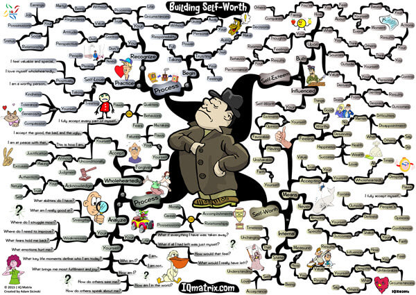This IQ Matrix explores how to build a higher level of self-worth and start believing in yourself again. Self-worth is, however, often confused with self-esteem. They are certainly related, however, there is a difference. Where self-esteem is derived from sources that are outside of ourselves, self-worth, on the other hand, comes from within, from a sense of personal power. Self-worth is a measure of how you value yourself in spite of your results, in spite of what’s happening around you, and in spite of what others might think or say about you. Therefore, to have self-worth is to have personal power. And with a sense of personal power, anything becomes possible. This mind map breaks down the key differences between self-worth and self-esteem. It then takes you through a five-step process you can use to help you build your self-worth. Working through this map will help you feel more confident irrespective of what life throws your way. Your self-esteem will, therefore, no longer be at the mercy of your results or of what others say or do. The only thing that will matter is what you think about yourself.