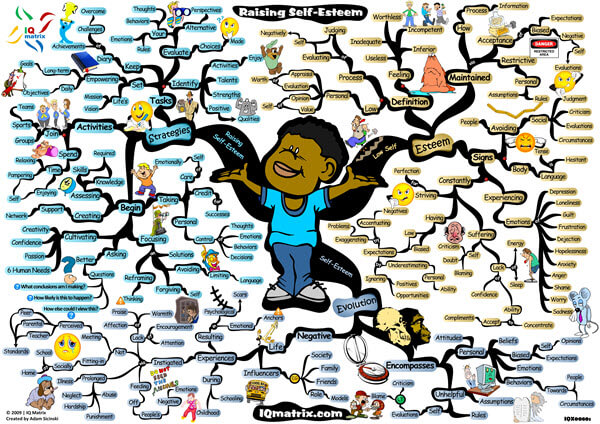 This IQ Matrix explores how to raise your self-esteem and feel more confident in yourself and in your own ability to achieve your goals. The mind map defines what it means to have self-esteem. It provides reasons why we struggle with low self-esteem. It delves into the physical and emotional signs of low self-esteem. The map then explores the social, environmental, and psychological evolutionary path that typically results in low self-esteem. The map concludes by presenting you with several guidelines and suggestions for raising your self-esteem levels throughout the day. Working through this map will help you develop the daily habits and practices that will progressively enhance your level of self-esteem and improve your self-confidence.