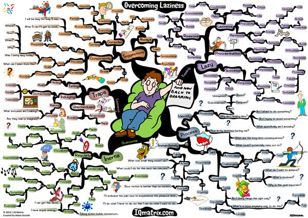 This IQ Matrix explores how to get out of the habit of indulging in lazy rituals that sabotage your goals and objectives. Life is just too short, and we only have a limited amount of time during the day. Your lazy habits are doing you no favors, in fact they are hurting your productivity and preventing you from living the life you truly desire to live. It’s time to break the cycle of those lazy habits and live life with a greater sense of purpose and urgency. The mind map breaks down the reasons why you're feeling lazy in the first place. It explores how to find more motivation to do the things you know need to get done. It shows you how to overcome inertia. This is all about getting your body moving with purpose. It highlights various laziness traps that you'll do best to avoid. And it presents you with numerous suggestions that will help inspire you to let go of your lazy habits of mind. Working through this map will help you develop a new set of rituals and habits that will allow you to break the cycle of laziness in your life.