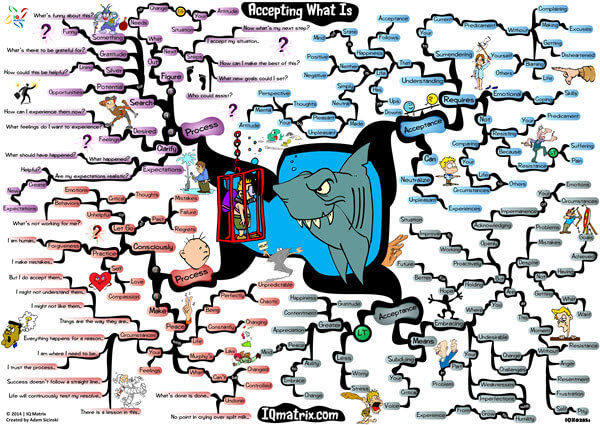 This IQ Matrix will help you to make peace with your current predicament no matter how awful, discouraging or uncomfortable it might seem in the present moment. When you learn to make peace with your current life and circumstances without emotional resistance, you develop the mental capacity and the necessary perspective to handle things in the most advantageous way possible. Even though things might seem bad right now, an unhelpful perspective and a poor mental attitude will only make things worse. The only way to make the best out of the situation is to accept what is and then do what you can with what you have to make things better. This mind map walks you through what it means to accept without resistance. It then goes through a five-step process you can use to develop the habit of acceptance without resistance. Working through this map will help you make peace with how things are right now regardless of the stressful and uncertain situation you find yourself in.