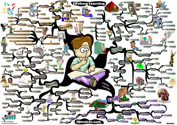 This IQ Matrix outlines how a commitment to lifelong learning will give you the edge you need to achieve your life’s goals and objectives. This is especially of value for those who want to become experts in their field of endeavor. Constant learning, growing, and skill development is the only way to achieve expert status over the long-run. The mind map explores the idea of constant and never-ending improvement and the value it can bring to your life. It breaks down the fundamental universal laws of lifelong learning and the benefits of following them. It highlights the skills, mindset, and behaviors you will need to adopt to become a lifelong learner. And concludes by presenting you with a series of guidelines and questions to help you make lifelong learning a transforming daily practice.